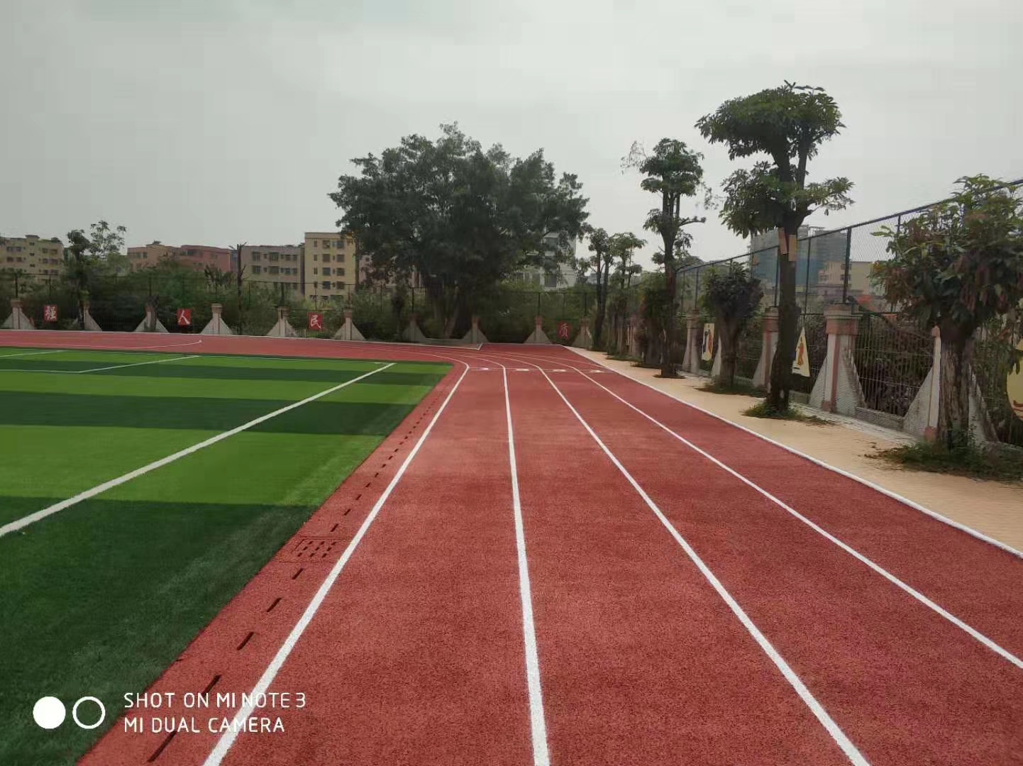 7、 平整度到達世界田聯規范,透水性好,小雨天不需中止競賽,大雨后可當即競賽,不會有積水現象。