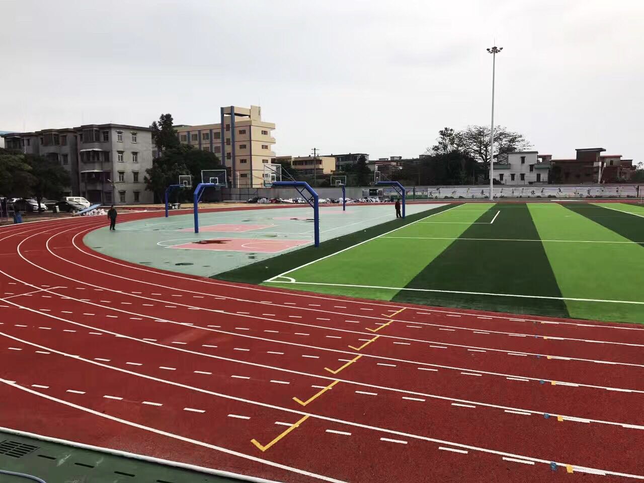 3、混合型塑膠跑道面層含聚氨脂材料較多,因此彈性要比其余兩種類型跑道要好些。具有較高的專業性,加之聚氨酯原材料價格昂貴,一般用于專用體育場及大中專院校田徑場;采用國際田聯認可的混合結構,符合國際賽事標準,適用于各類學校運動場地。
